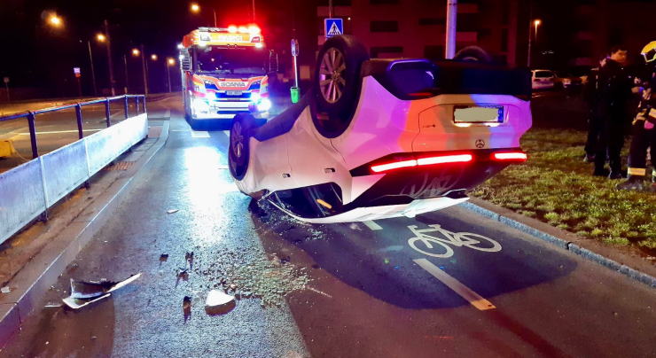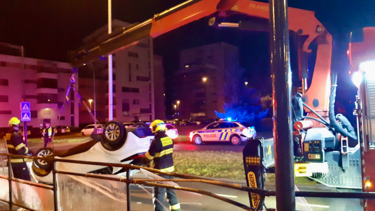 PRAHA – V Novodvorské ulici v pražských Modřanech havarovalo dnes po páté hodině ranní osobní auto a skončilo po nárazu na střeše.