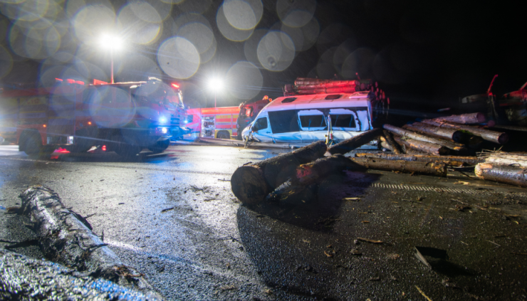 Při nehodě došlo u nákladního vozidla převážejícího dřevo, jedoucího ve směru na Frýdek-Místek, k prasknutí pneumatiky. Následkem toho vůz narazil do vedle jedoucí dodávky a poté do svodidel. Část nákladu se vysypala do protisměru, kde do uvolněné kulatiny postupně narazila tři osobní vozidla. Jedno z nich se převrátilo na střechu a jeho řidič v něm zůstal zaklíněn.