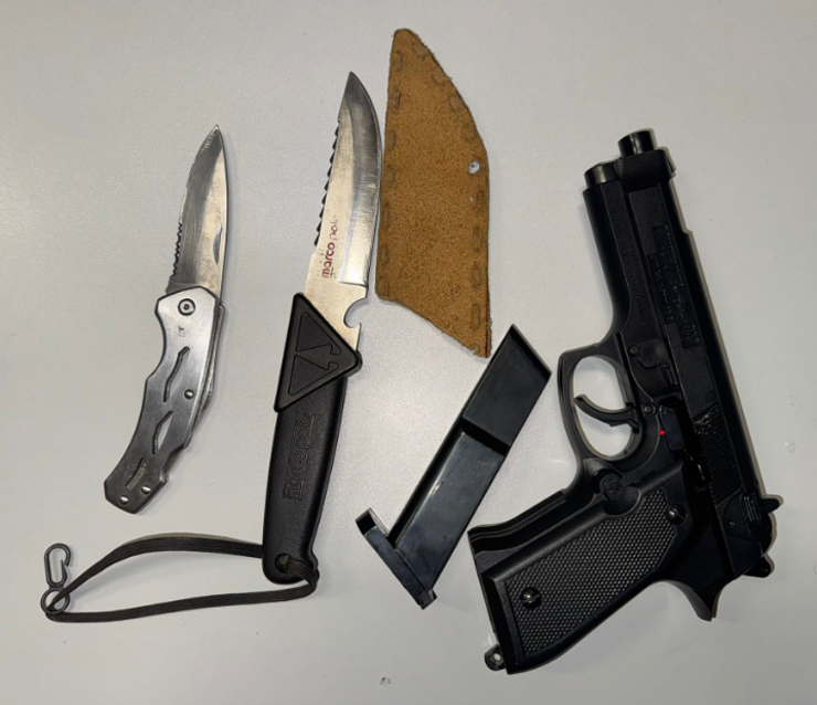 Všimli si ho nakupující a volali policisty. Mladík byl policisty rychle zadržen, nože zajištěny, maketa pistole také. „Naštěstí se svojí výzbrojí chtěl jen pochlubit kamarádům,“ dodali policisté.