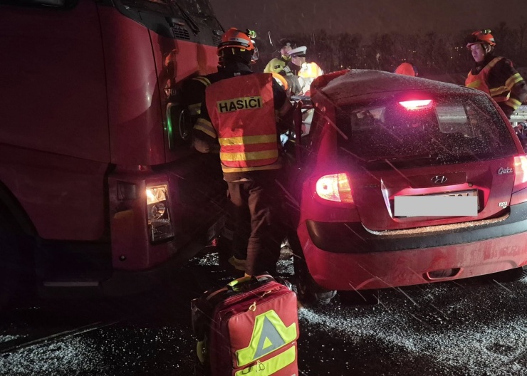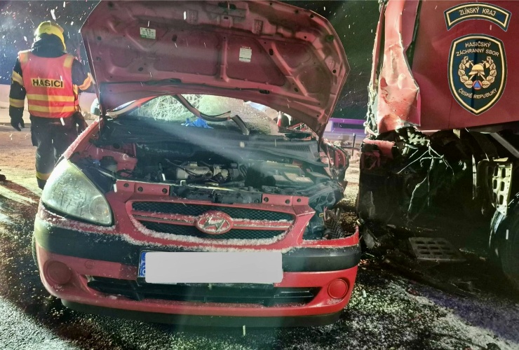 NAPAJEDLA – Profesionální hasiči ze stanice Otrokovice a dobrovolní hasiči z Napajedel a Babic vyjeli včera v 19 hodin k dopravní nehodě osobního a nákladního automobilu na dálnici D55 u Napajedel.