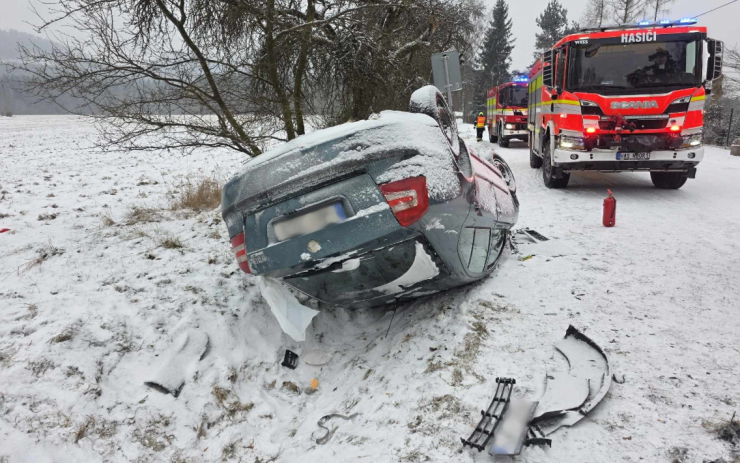 Sníh zasypal silnice. Hasiči v pondělí zasahovali u 11 dopravních nehod
