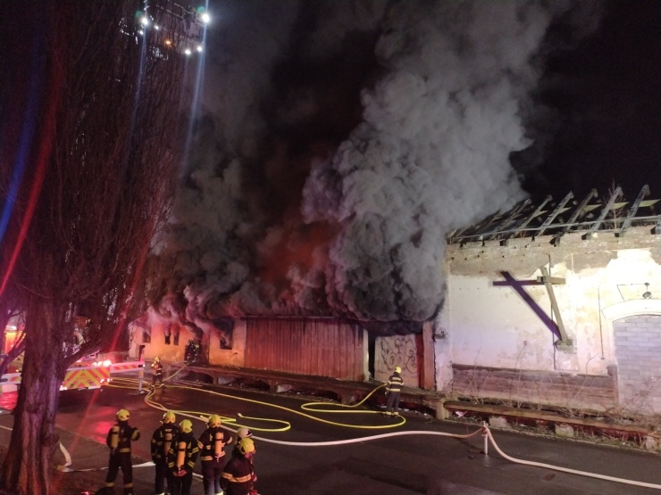 OSTROV NAD OHŘÍ – Hasiči od ranních hodin zasahují v Ostrově nad Ohří u požáru skladové drážní haly. Z místa je viditelný hustý černý kouř.