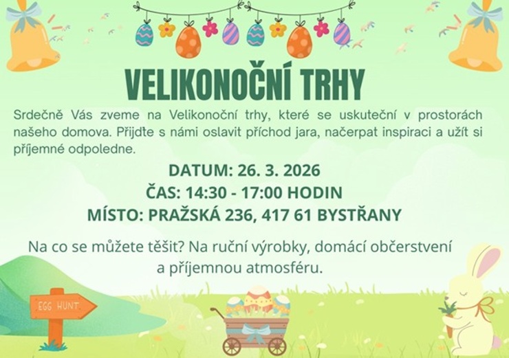 BYSTŘANY – Velikonoční trhy v areálu domova na dnešní odpoledne připravují klienti a pracovníci Domova důchodců v Bystřanech na Teplicku.