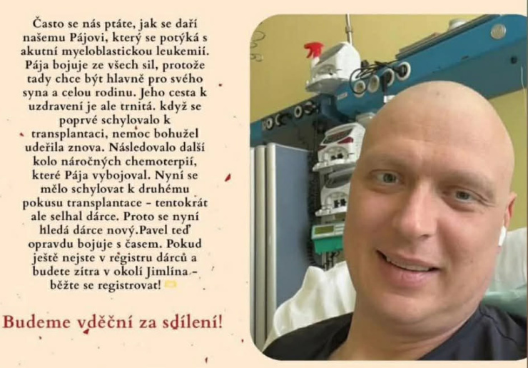 Bohužel týden před plánovanou transplantací kostní dřeně se od lékařů Pavel Tesárek dozvěděl zdrcující zprávu, že dárce odstoupil. Nyní tak rozehrál boj s časem doslova o holý život a hledá co největší počet případných vhodných dárců kostní dřeně.
