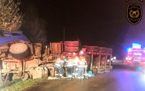 KROMĚŘÍŽSKO – Minutu po páté hodině ranní byli vysláni profesionální hasiči ze stanice Kroměříž k havárii kamionu, který se v obci Břest na Kroměřížsku převrátil na bok. Řidič vyvázl bez zranění. Hasiči po příjezdu na místo průzkumem zjistili, že z kamionu uniká větší množství provozních kapalin. Velitel zásahu si tak na místo povolal posilu ze […]