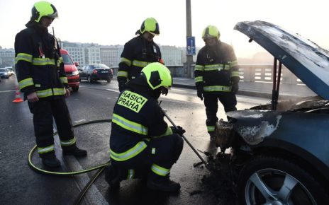 Požár automobilu na Jiráskově mostě likvidovala jednotka z centrální stanice