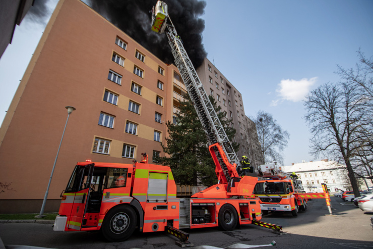 AKTUÁLNĚ: V Ostravě hoří střecha panelového domu! Hasiči nasadili i výškovou techniku