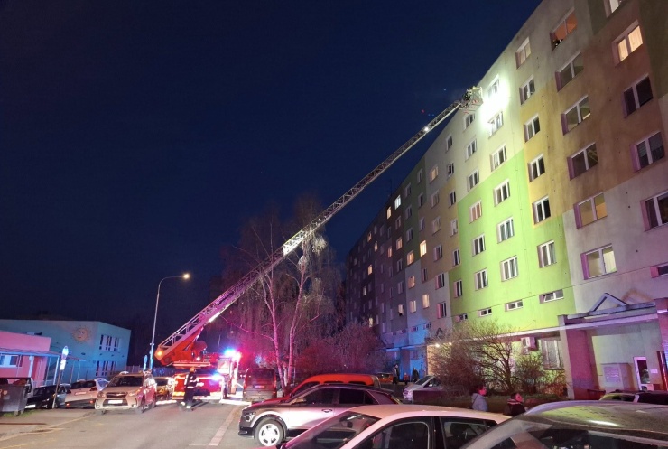 Požár bytu panelového domu Hvězda v Litvínově vyhnal přes padesát lidí