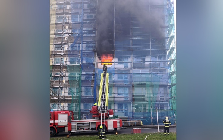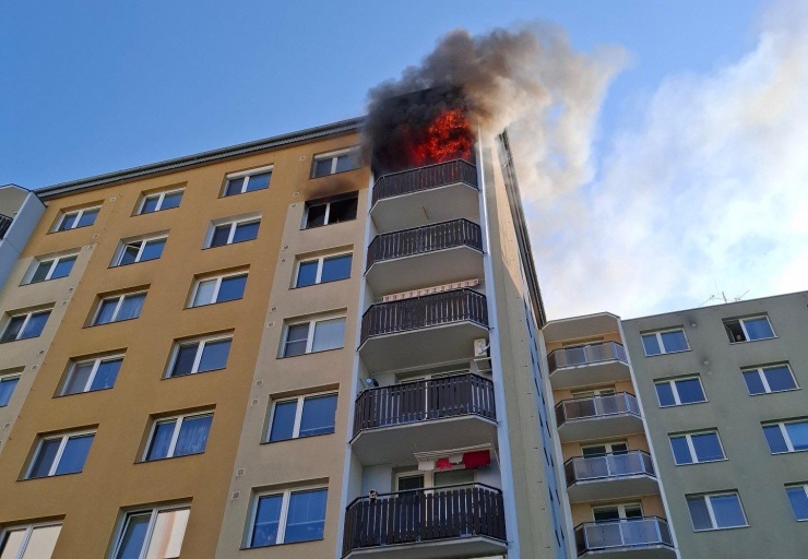 Požár balkonu v 7. patře panelového domu v Olomouci zaměstnal tři hasičské jednotky