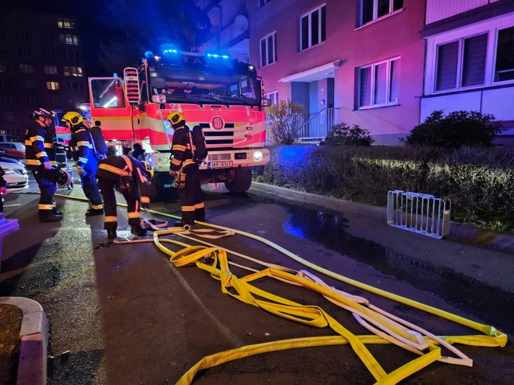 Noční požár odpadu v jednom z bytů panelového domu v Chodově na Sokolovsku zaměstnal hasiče