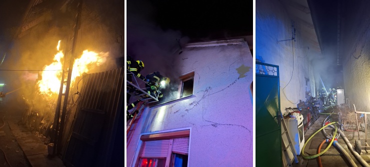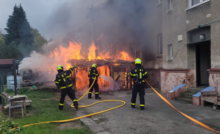 OBRAZEM: Od hořícího přístřešku se požár rozšířil na bytový dům na Karvinsku