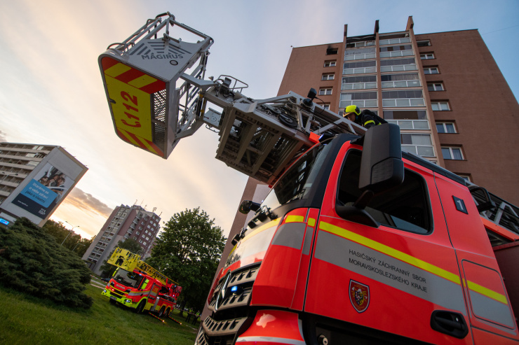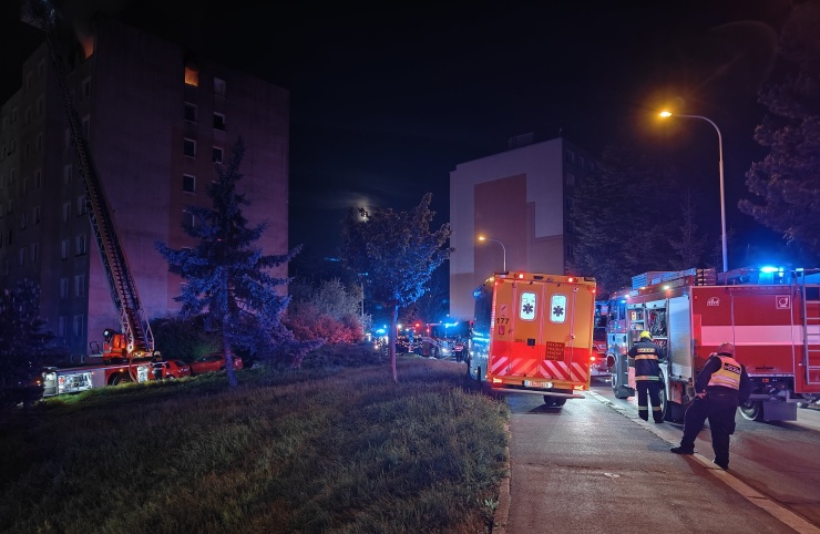 Při požáru v nejvyšším patře třináctipodlažní budovy bylo evakuováno 61 osob, 4 osoby byly zachráněny