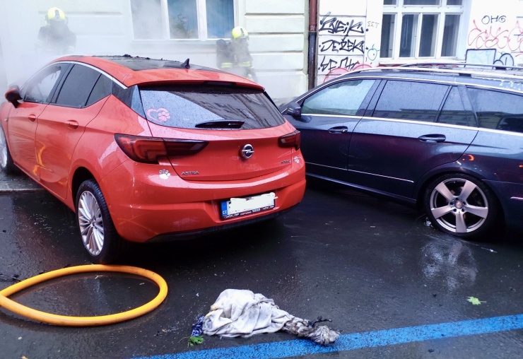Muž vyhodil hořící předměty z okna bytu! Plameny se rozšířily na zaparkovaná auta