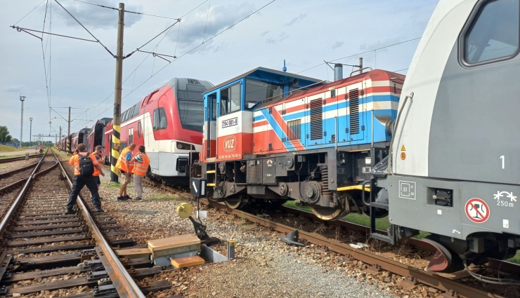 Na Železničním zkušebním okruhu Cerhenice se srazil posunový díl s odstavenou skupinou vozidel