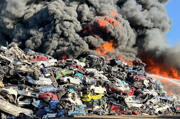 AKTUALIZUJEME: Požár autovraků na skládce v České Lípě zaměstnal hasičské jednotky