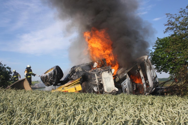 TRAGÉDIE: Ve shořelém kamiónu u Vodňan našli hasiči uhořelého řidiče