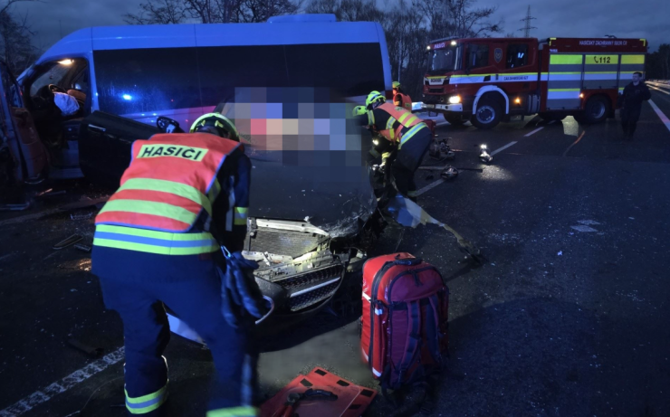 TRAGÉDIE: V České Lípě se při střetu mikrobusu a osobního automobilu zranilo deset lidí, jedna osoba nehodu nepřežila