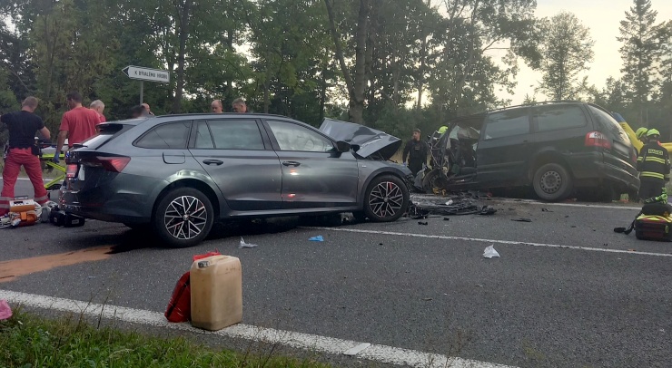 Při střetu dvou osobních aut na Jindřichohradecku zemřela spolujezdkyně, dalších pět lidí včetně dětí se zranilo