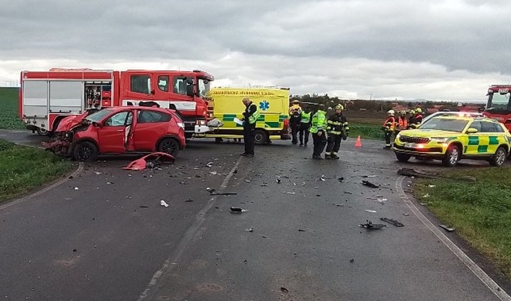 U Výškova na Lounsku se střetl autobus s osobním automobilem! Na místo vzlétl i vrtulník záchranářů
