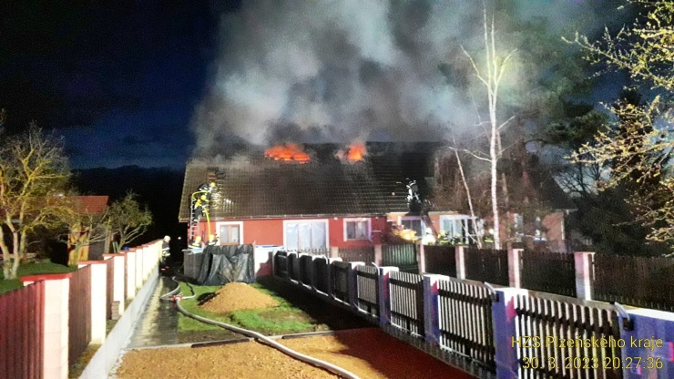 Na Rokycansku udeřil blesk do střechy rodinného domu a zapříčinil požár