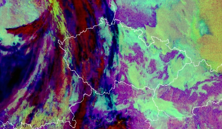 ČESKO – Dnes bude počasí u nás od západu ovlivňovat slábnoucí okluzní fronta, kterou lze na přiloženém družicovém snímku vidět jako převážně červený oblačný pás. Světle zelené odstíny značí přítomnost nízké (inverzní) oblačnosti a četných mlh, fialová barva je zemský povrch, tedy místa bez oblačnosti, kterých ale bude s přechodem fronty ubývat. Čekáme tedy převážně […]