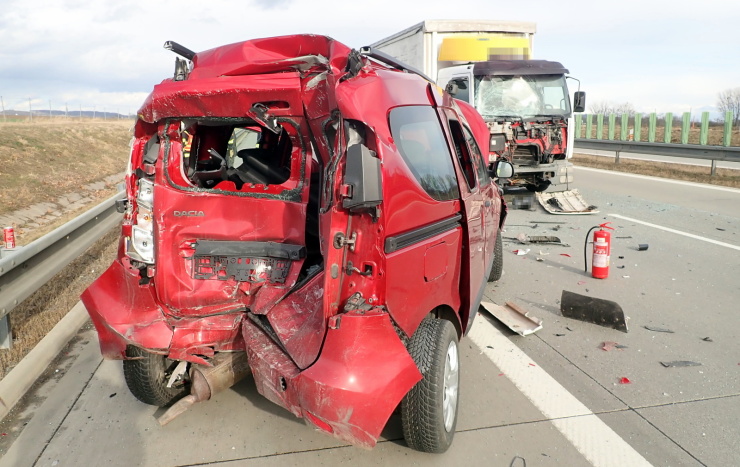 OBRAZEM: Na dálnici D1 nedaleko Hulína na Kroměřížsku se střetlo nákladní vozidlo s osobním automobilem