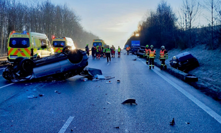AKTUÁLNĚ: Na dálnici D1 ve směru na Brno u Humpolce zasahují složky IZS u hromadné nehody