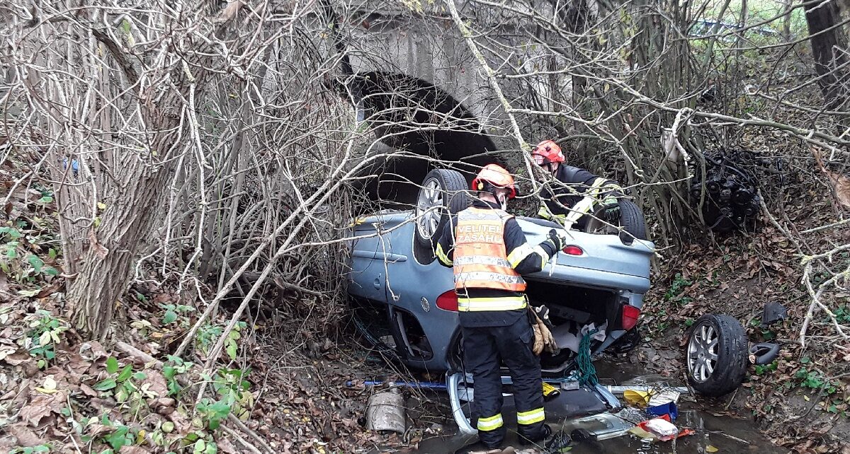 Osobní automobil skončil po nehodě v potoce. Hasiči z vozu vyprostili mladou ženu