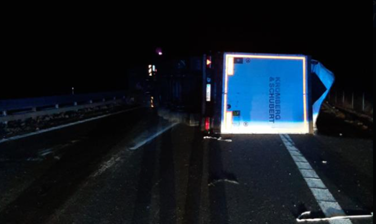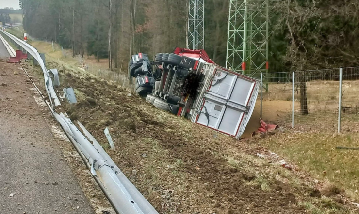Převrácený kamion na Břeclavsku blokuje několik hodin dálnici D2