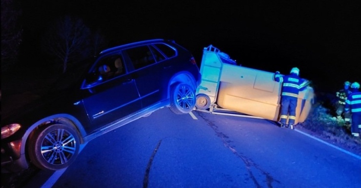 Nákladní vozidlo v Otrokovicích sjelo ze silnice a skončilo na boku