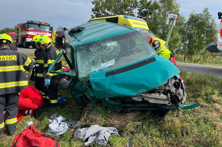 AKTUALIZUJEME OBRAZEM: Kamion u Želenic smetl dodávku a těžce zranil dvě osoby, které pracovaly na silnici