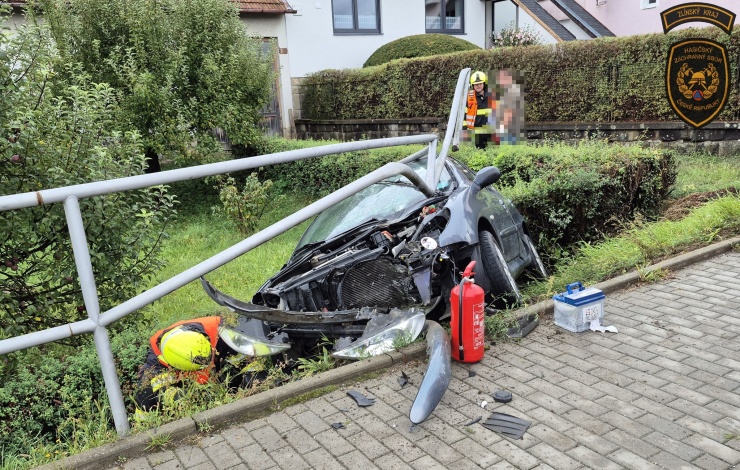 OBRAZEM: V Bojkovicích skončilo havarované auto v zábradlí