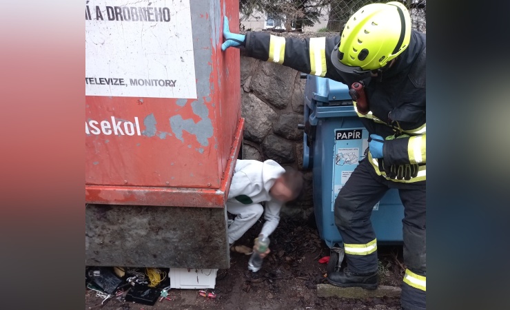 Hasiči v Úpici zachránili muže uvízlého v kontejneru na elektroodpad