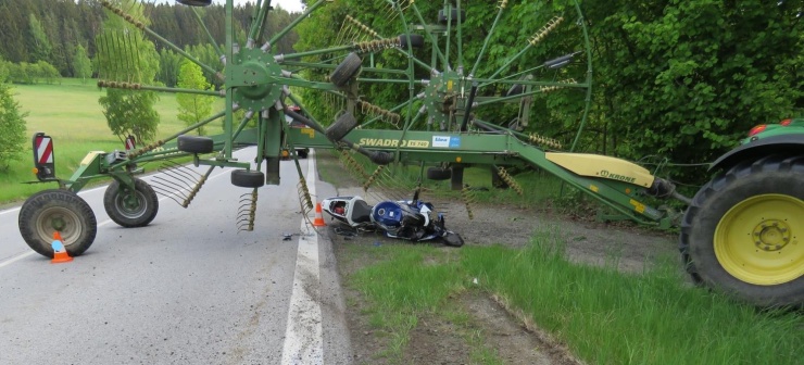 Na Českokrumlovsku se vážně zranil mladý motorkář při nárazu do zemědělského stroje