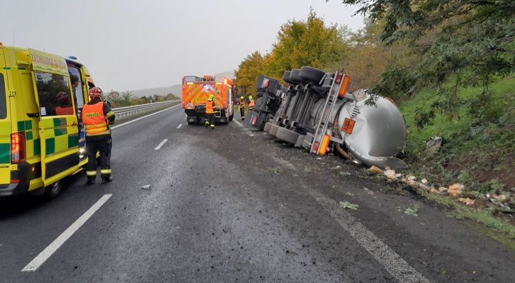 OBRAZEM: Cisterna u Mostu skončila na boku