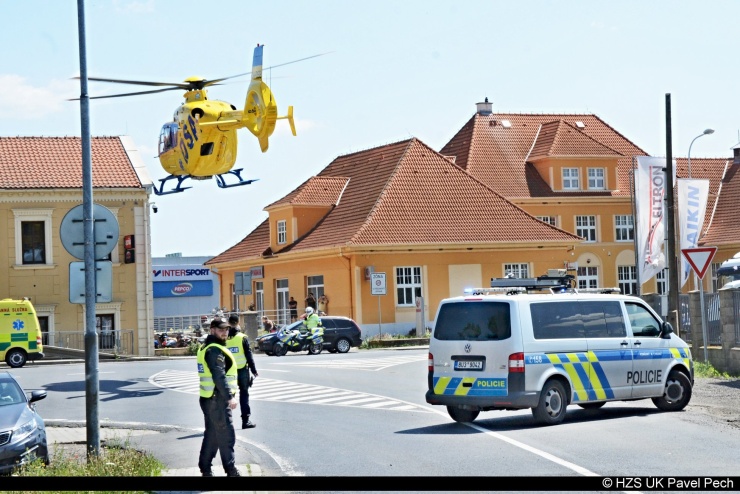 U střetu sanitky a dvou osobních aut v Litoměřicích zasahoval i vrtulník leteckých záchranářů