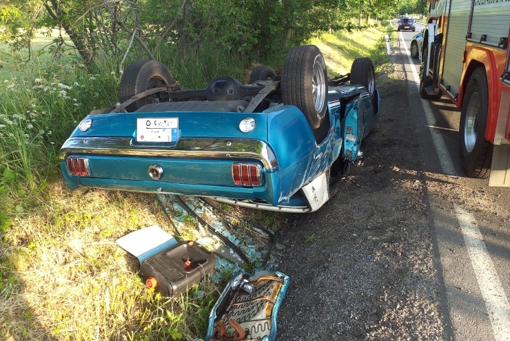 Osobní automobil se čtyřmi cestujícími skončil v obci Seč převrácený na střeše