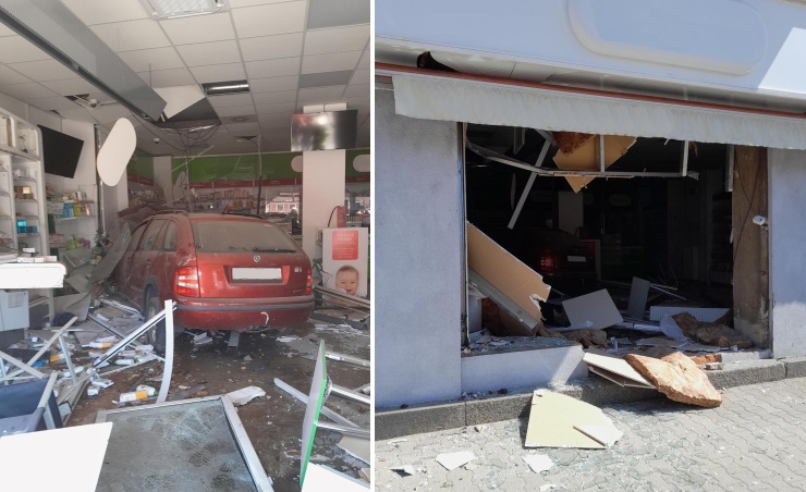 Řidič projel v Rakovníku výlohou lékárny! Skončil v nemocnici