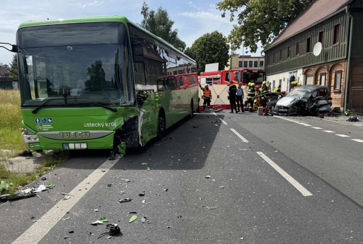 Dva lidé se těžce zranili při střetu autobusu s osobním autem ve Varnsdorfu