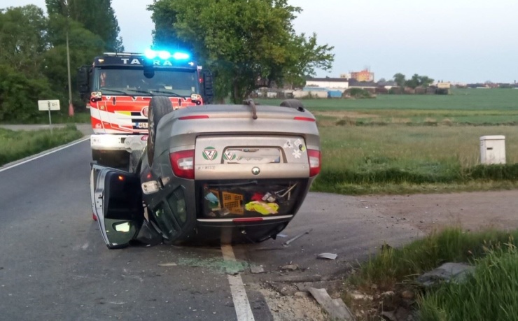 U Blatné na Strakonicku skončilo havarované osobní auto na střeše