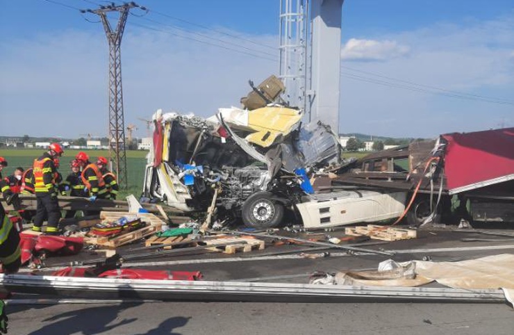 Při včerejším střetu osobního auta s kamionem u Chomutova se zranila jedna osoba