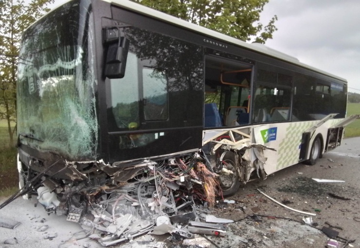 U obce Lhotka na Jihlavsku se střetl autobus s nákladním vozem