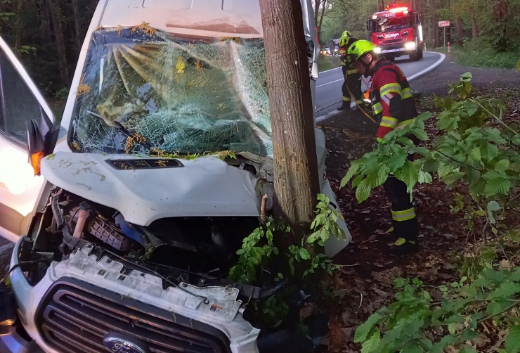 Řidič dodávky narazil u Borohrádku do stromu! Hasiči ho museli vyprostit z havarovaného vozu