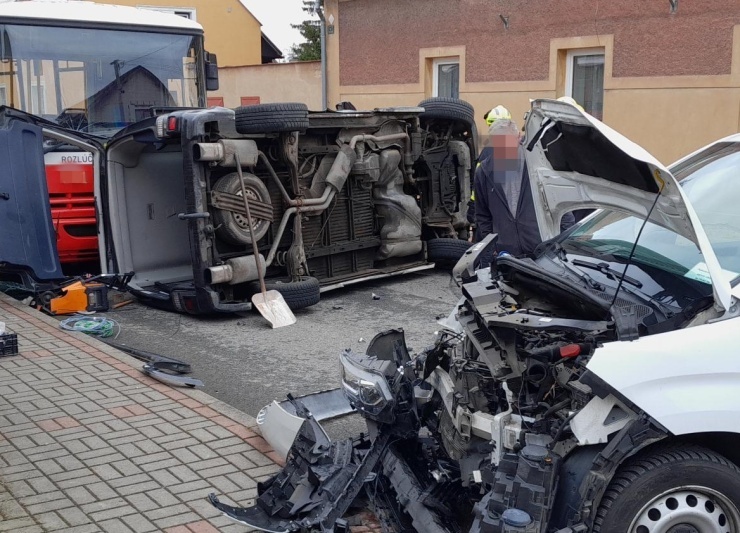 Při střetu dvou osobních aut a autobusu na Kladensku skončilo jedno auto na boku