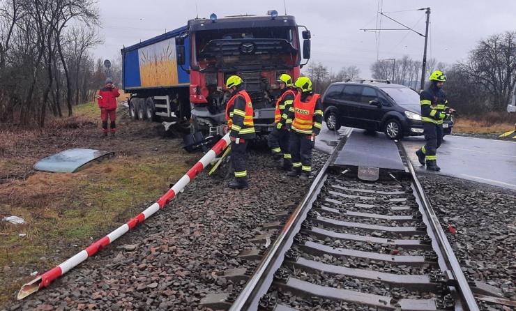 Řidič kamionu narazil do přejezdového zabezpečovacího zařízení na železničním přejezdu