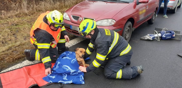 Na silnici v Hroznětíně na Karlovarsku srazilo osobní auto psa, který zůstal zraněný a zaklíněný pod vozidlem