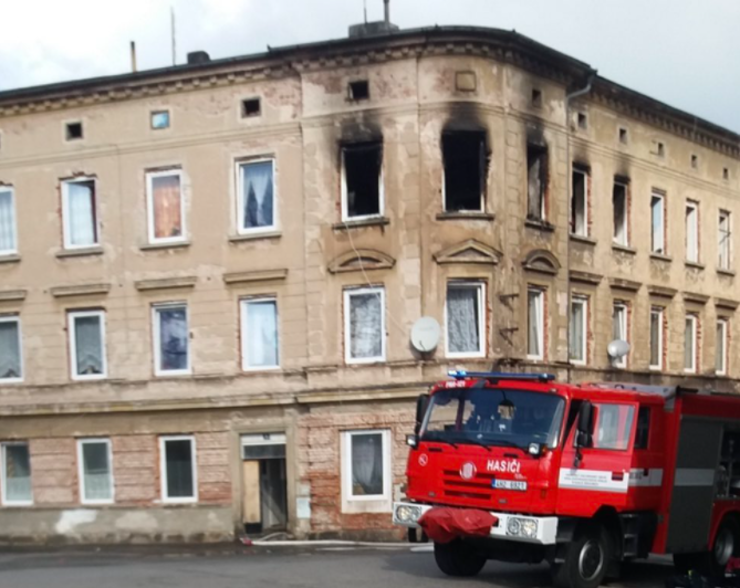 Požár bytu panelového domu ve Varnsdorfu vznikl od hořící svíčky na stolku! Při požáru se pět lidí zranilo