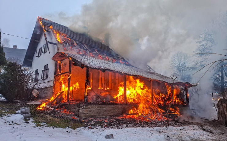 OBRAZEM: Chatu v Hradci Králové dnes nad ránem zcela pohltily plameny