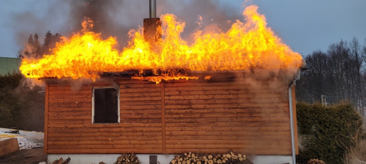 U požáru chaty v Třebsíně na Benešovsku v plném rozsahu zasahuje šest hasičských jednotek