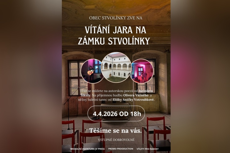 STVOLÍNKY – Obec Stvolínky zve na tradiční Vítání jara na zámku Stvolínky na Českolipsku. To se uskuteční již zítra, tedy v sobotu 4. dubna od 18.00 hodin. Těšit se můžete na autorskou poezii od Jaroslava Šikuly. Na příjemnou hudbu Olivera Vážného a něžný baletní tanec od Elišky Aničky Votroubkové. Vstupné je dobrovolné a agentura JV […]
